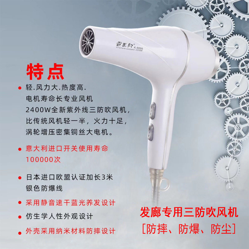 Bully Leopard 8898 Hair Salon Special Hair Dryer Wind Power Big 2400 Watt Heat High 3 m Power Cord Fast Dry Hair