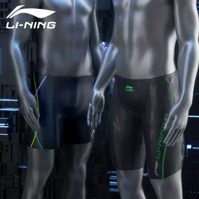 Li Ning swimming trunks men's swimsuit set flat corner five-point swimming trunks anti-embarrassing swimming goggles swimming cap professional swimming equipment