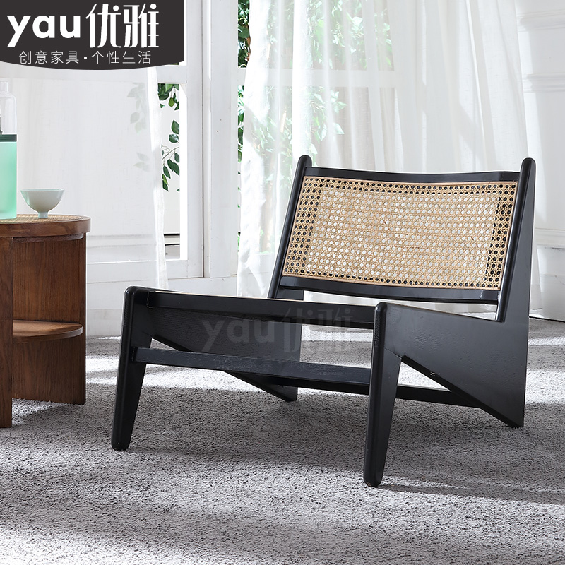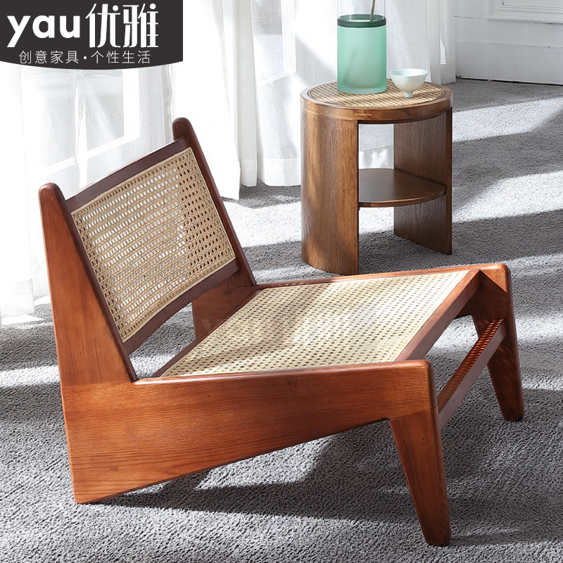 Modern minimalist classic designer living room balcony single rattan solid wood Nordic leisure chair home B&B lounge chair