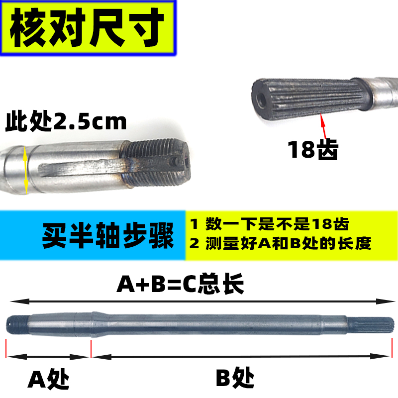 Electric tricycle rear axle half-axle rear axle axle tricycle rear axle 18-tooth drive shaft suitable for 6205 bearings