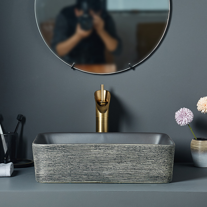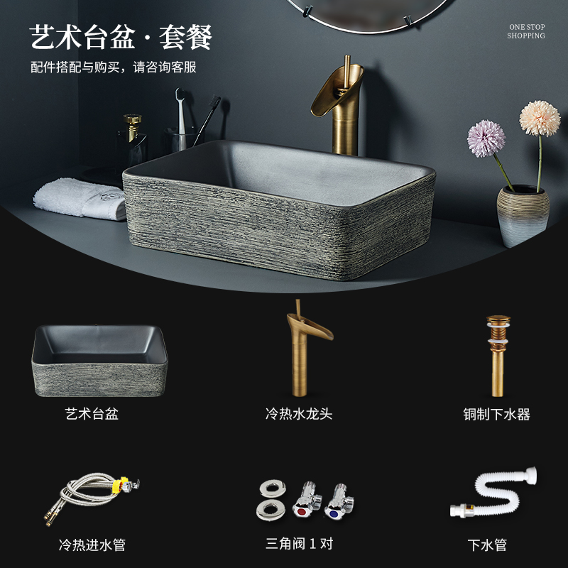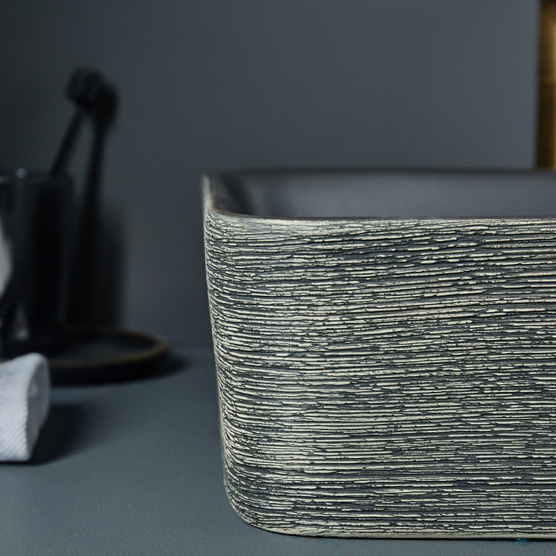Comprehensive ceramic art rectangular bench on the basin with a retro table wash pool drawn by a simple wash basin