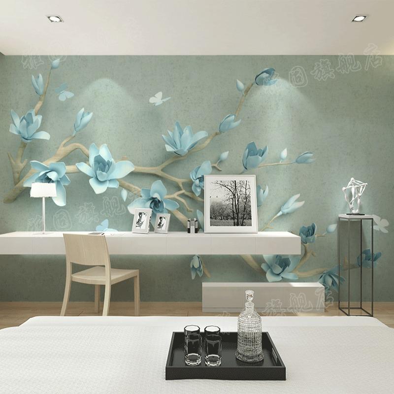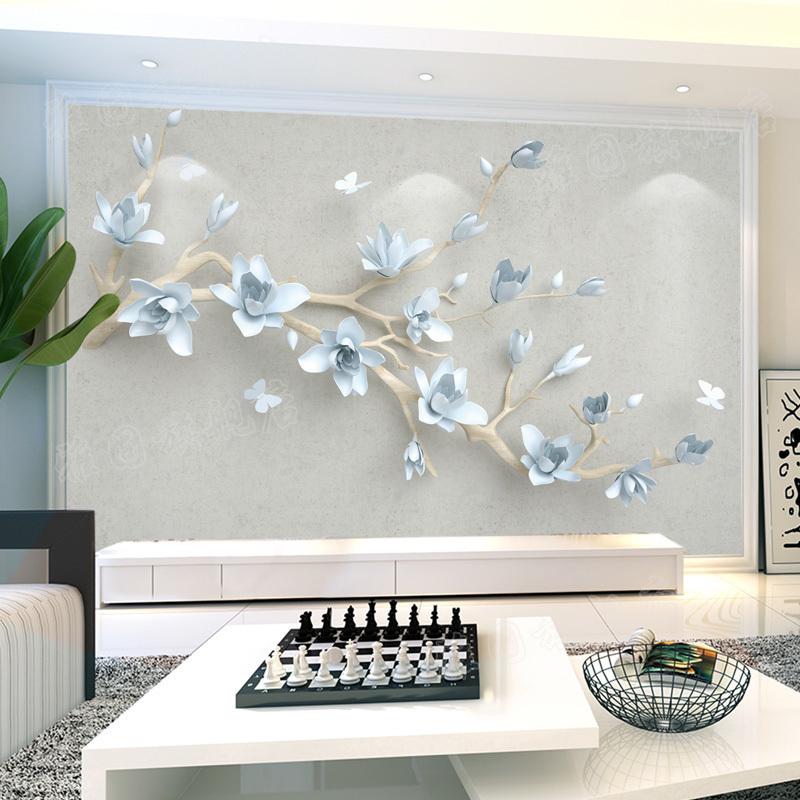custom 3d three-dimensional embossed magnolia flower butterfly new Chinese style living room TV background wall wallpaper wall covering self-adhesive