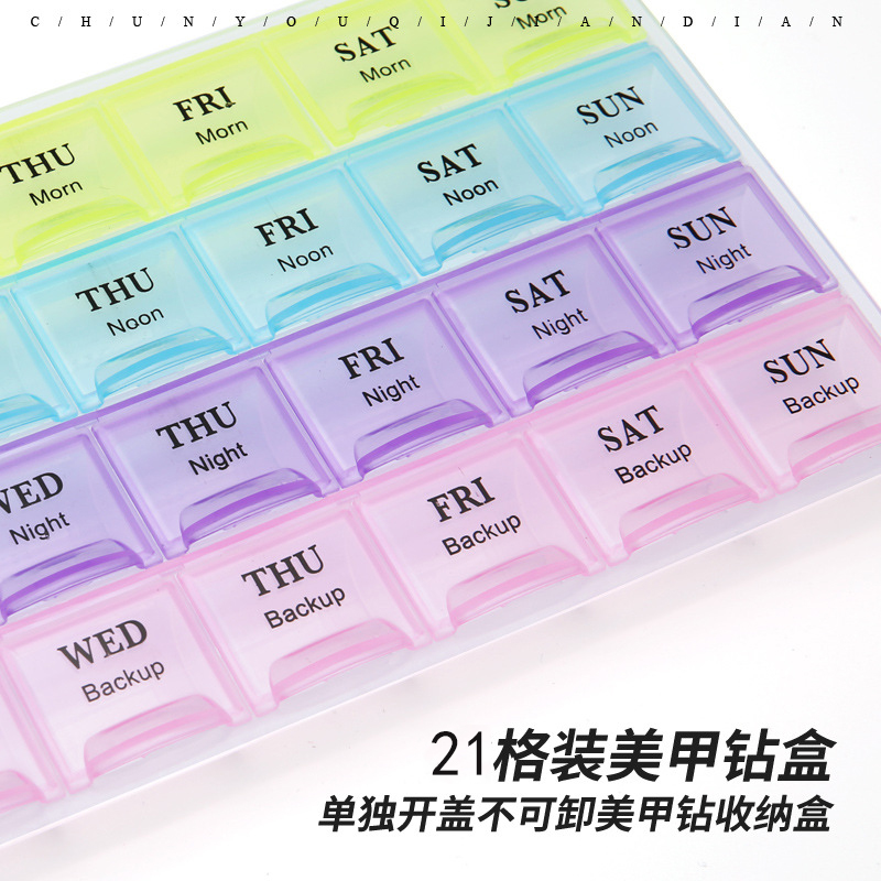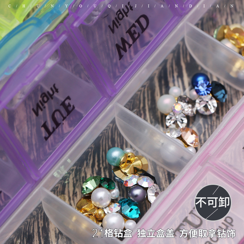 Nail Art Drill Box Tool Box Alloy Drill Storage Box Nail Art Rhinestone Jewelry Box 21 Grid Plastic Transparent Jewelry Box