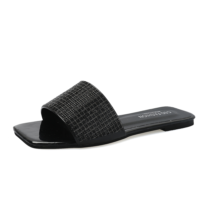 Net red large size slippers female summer wear 2022 new Korean version all-match rhinestone student sandals female beach one word slippers