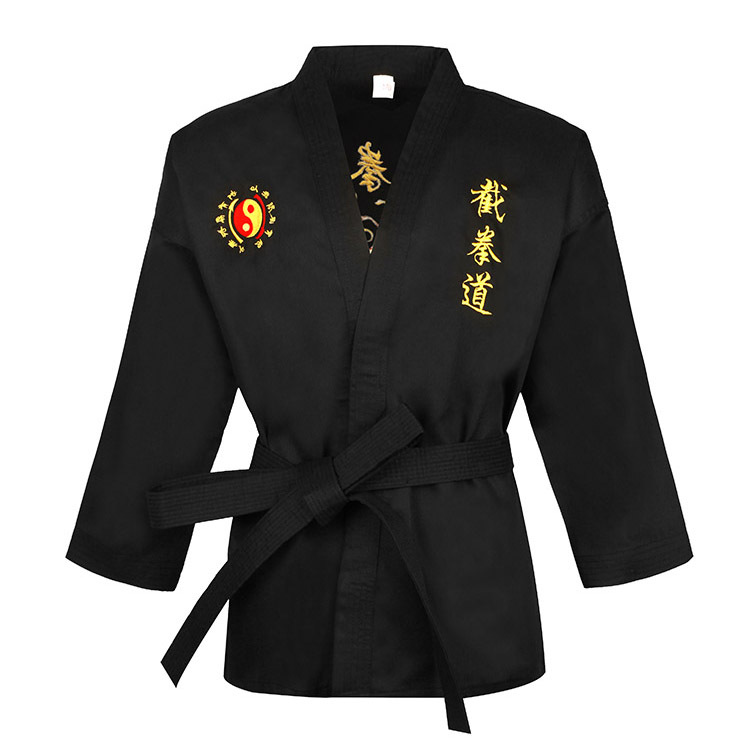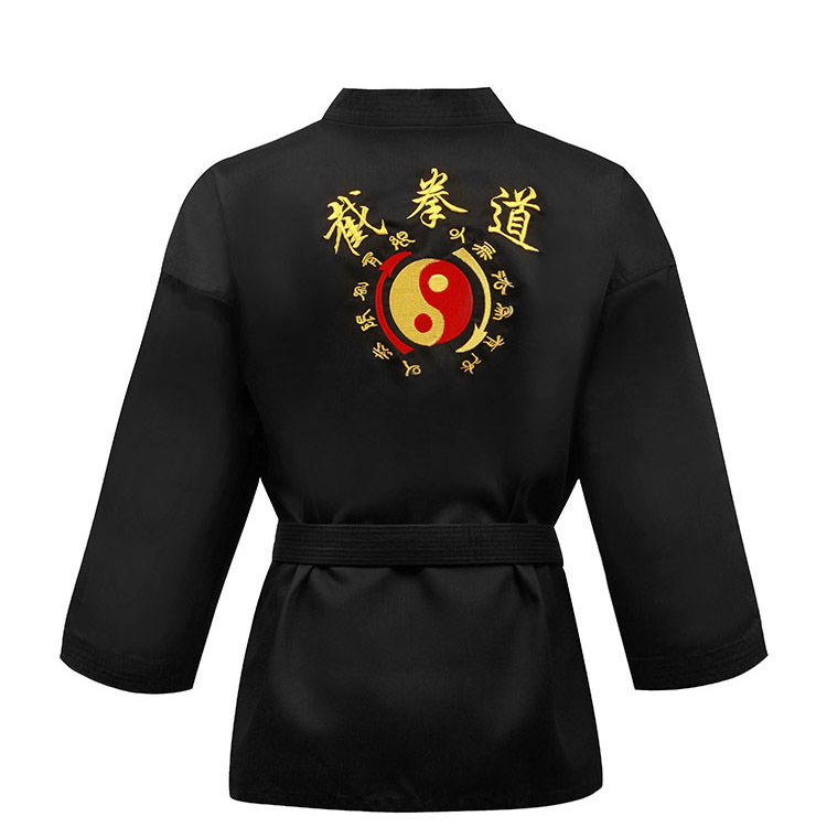 Factory spot Bruce Lee full embroidery cut boxing costume men and women adult children open placket black polyester cotton send belt