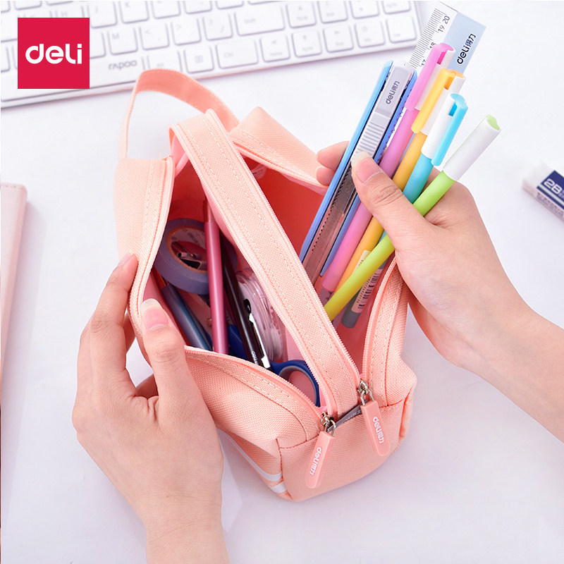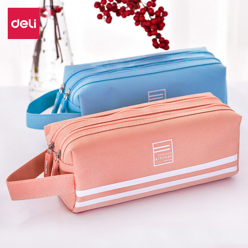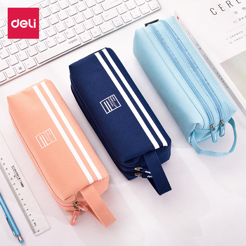 Deli primary school student pencil bag Korean simple girls large capacity stationery box Children's cute creative pencil box girl stationery bag Small fresh cute girl middle school student pencil bag