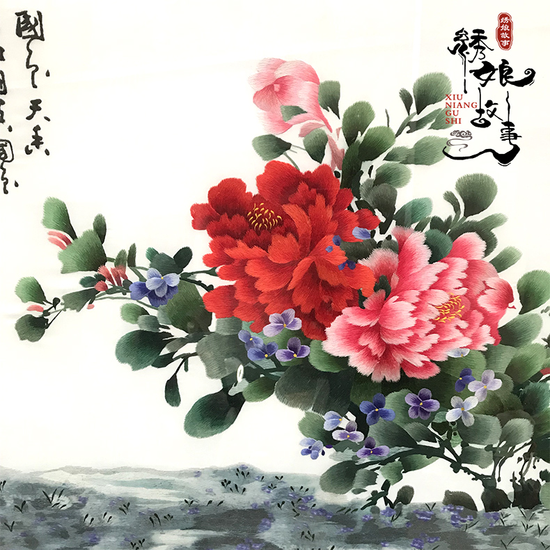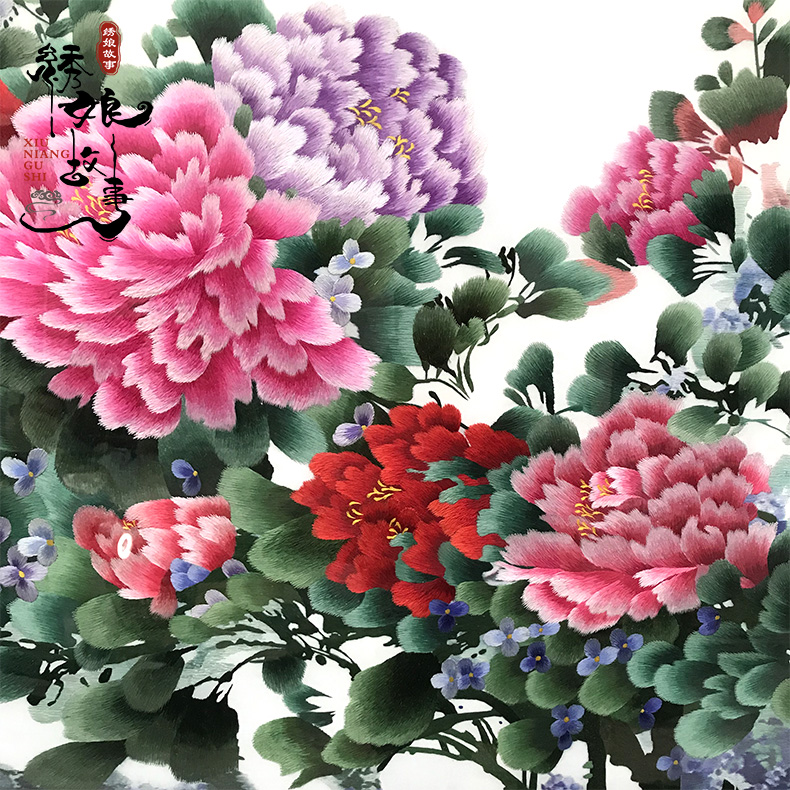 Suzhou embroidery living room painting peony flower national color and heavenly fragrance pure hand embroidery Chinese business gift for friends and customers