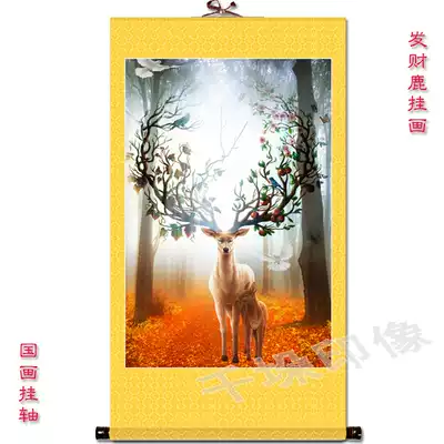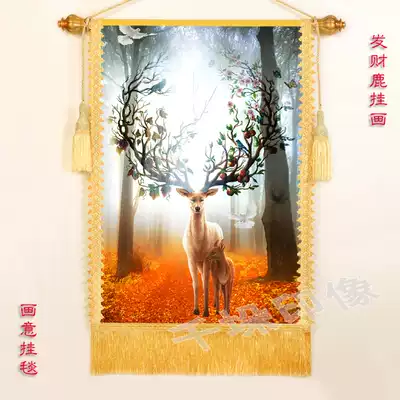 Fat deer decorative painting Chinese painting hanging shaft oil canvas hanging painting wall murals wide edge tassel hanging carpet painting can be customized