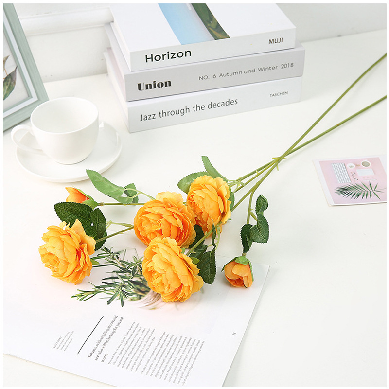 Simulation flower long rod simulation foreign peony rose silk flower home decoration wedding three-headed foreign peony simulation plant flower