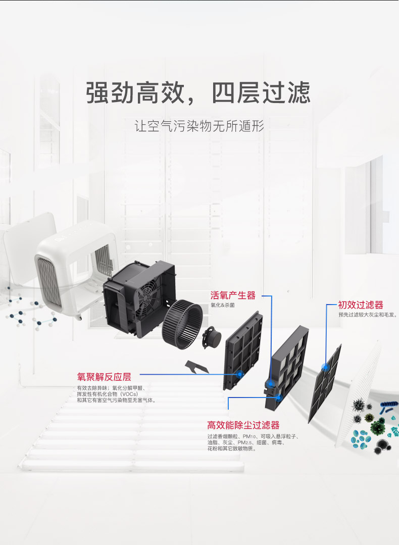 Germicidal and formaldehyde-removing dust-removing smog-removing smog except for the particulate matter other than VOC