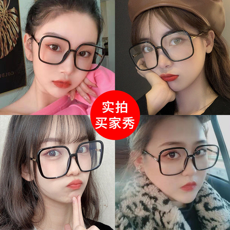 Glasses myopia women anti-blue light radiation-resistant vegan facial theorizer large face black frame mesh red eyes Korean version wave can be matched with degrees