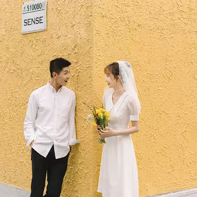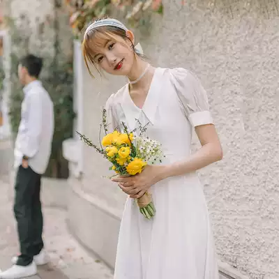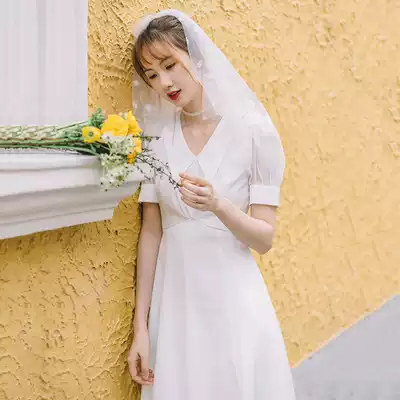 Time] Xia new French gentle first love dress certificate registration light Wedding Fairy Hepburn simple Platycodon collar