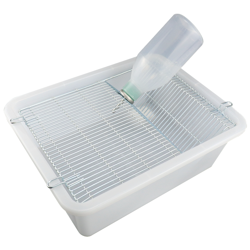 A small white mouse cage with a large white mouse cage with a small white mouse cage covered with a white large mouse cage covered with a white large mouse cage cover 500ml water bottle green water mouth in the rat cage 32*24c