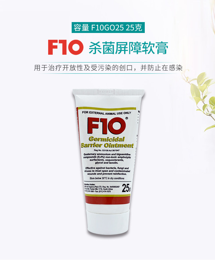 F10 Germicidal Barrier Ointment Multipurpose Broad Spectrum Ointment Bacteria Mycobacterial Wound Abrasions Bite 25g