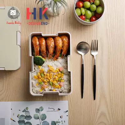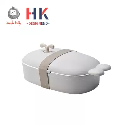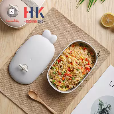 Mai Xiang relaxed bear lunch box 600ML-Nordic green wheat fragrant bear lunch box 600ML-Nordic blue wheat fragrance bear lunch box 600ML-Nordic powder simple three-piece lunch box-Gray