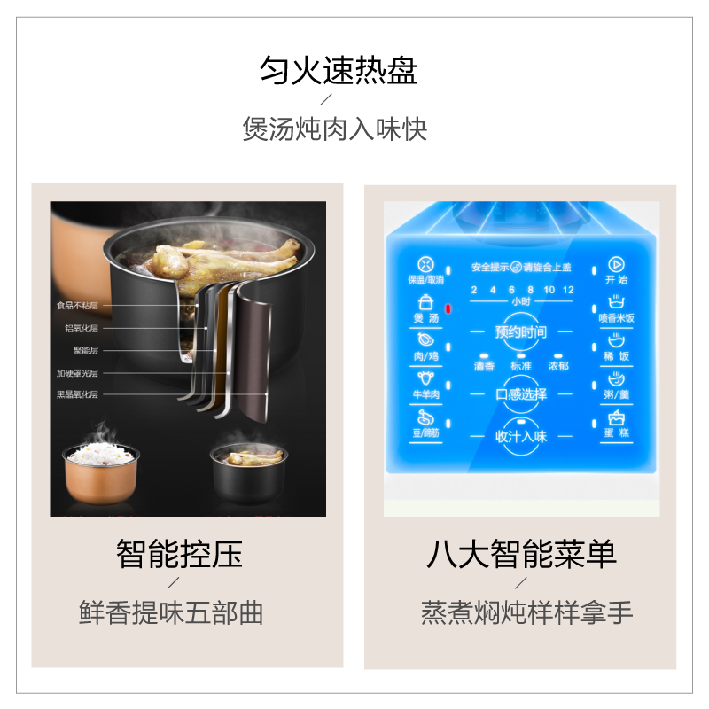 Midea electronic pressure cooker household 5L liter double-bile household intelligent pressure cooker Large capacity electronic pot 3-4-6 people