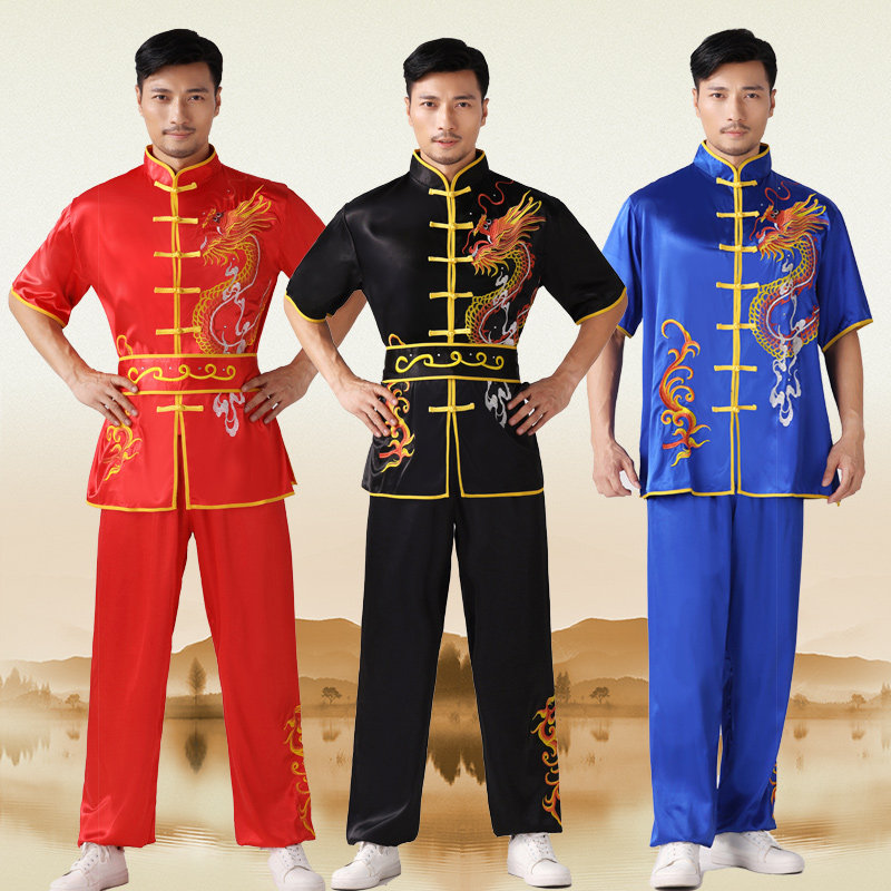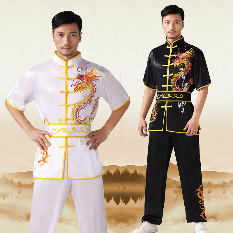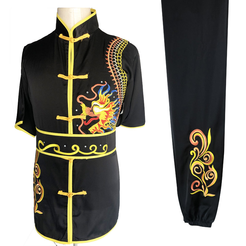 New martial suit embroidered dragon rehearsal for men and women's real silk performance competition to perform children's long box-boxing South Boxes-Taobao