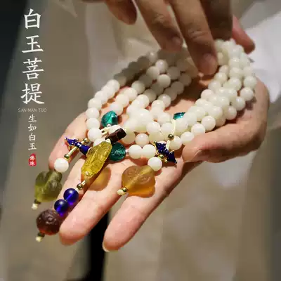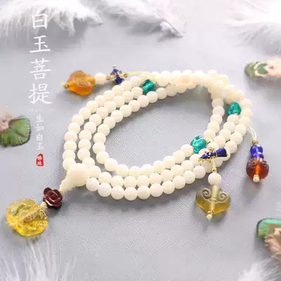 True Bodhi Root 108 hand string female life hand original Buddha beads Counter Jade White Jade Bodhi seed rosary