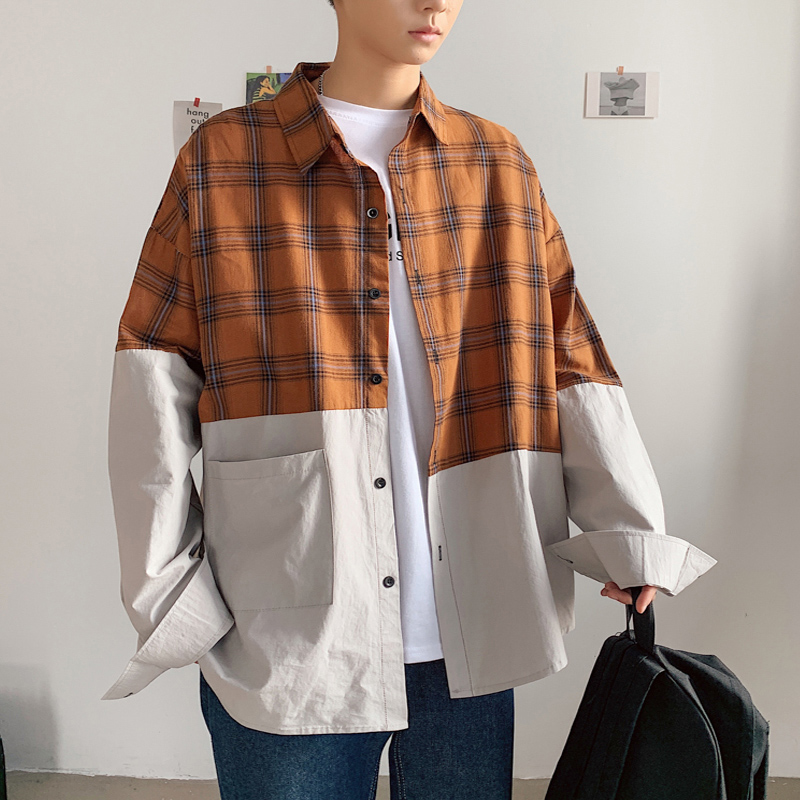 Plaid Shirt Male Port Wind Day Ensemble Big Size Trend Fatter Loose Casual Long Sleeve Shirt Men's Clothing Spring Autumn Season Jacket
