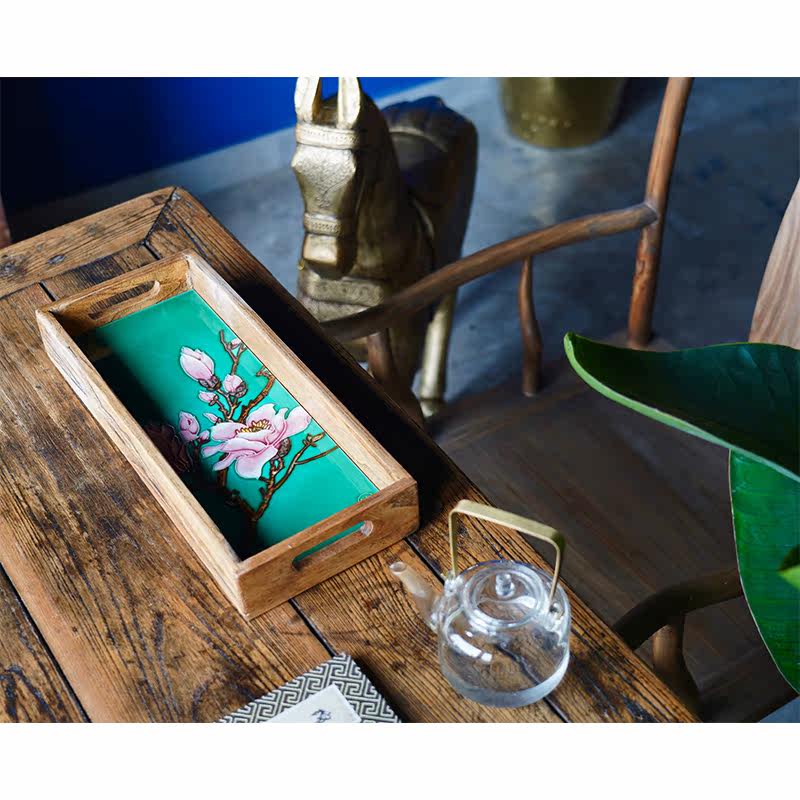 (Beautiful woman) original elm household tea tray tray ceramic storage tray decoration hanging plate decoration housewarming gift