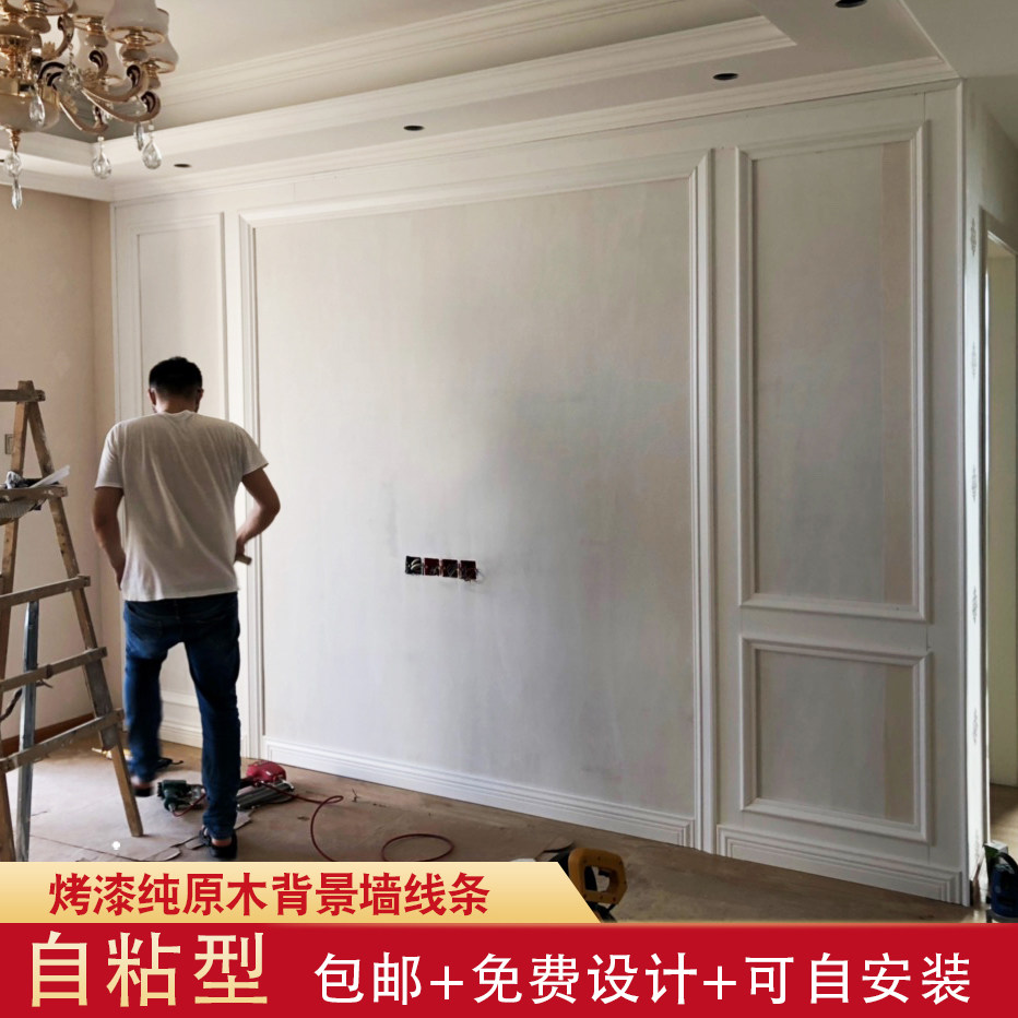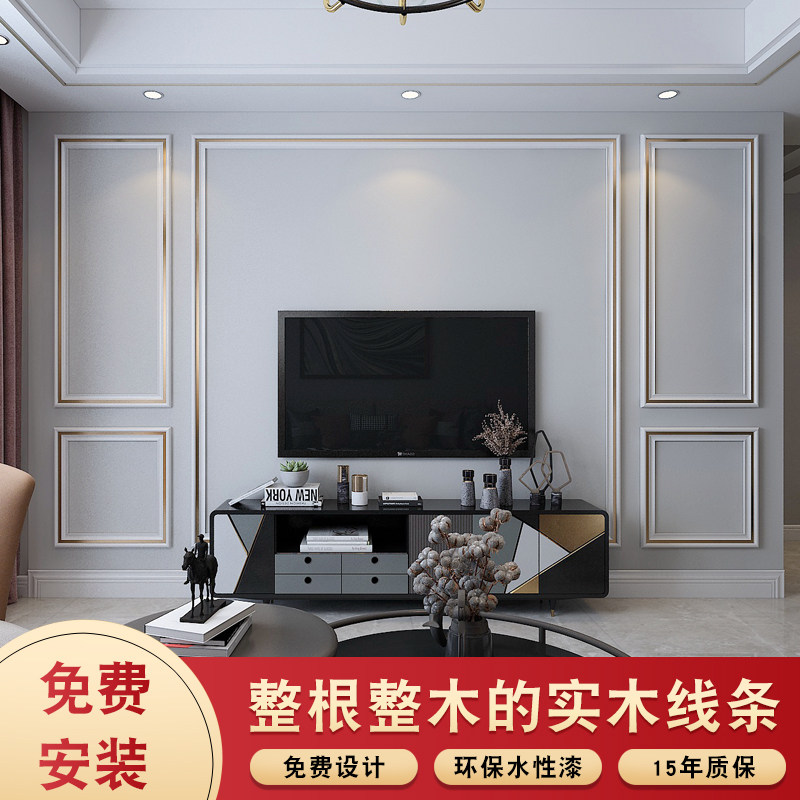 Solid wood line TV background wall border decorative strip wall wall living room suspended ceiling plaster line wood strip shape self-adhesive