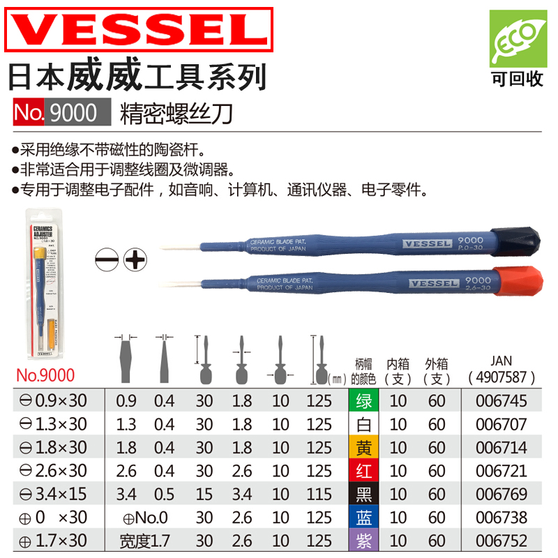 Japan VESSEL Weiwei ceramic screwdriver cross word import without sense test screw driver electronic batch 9000