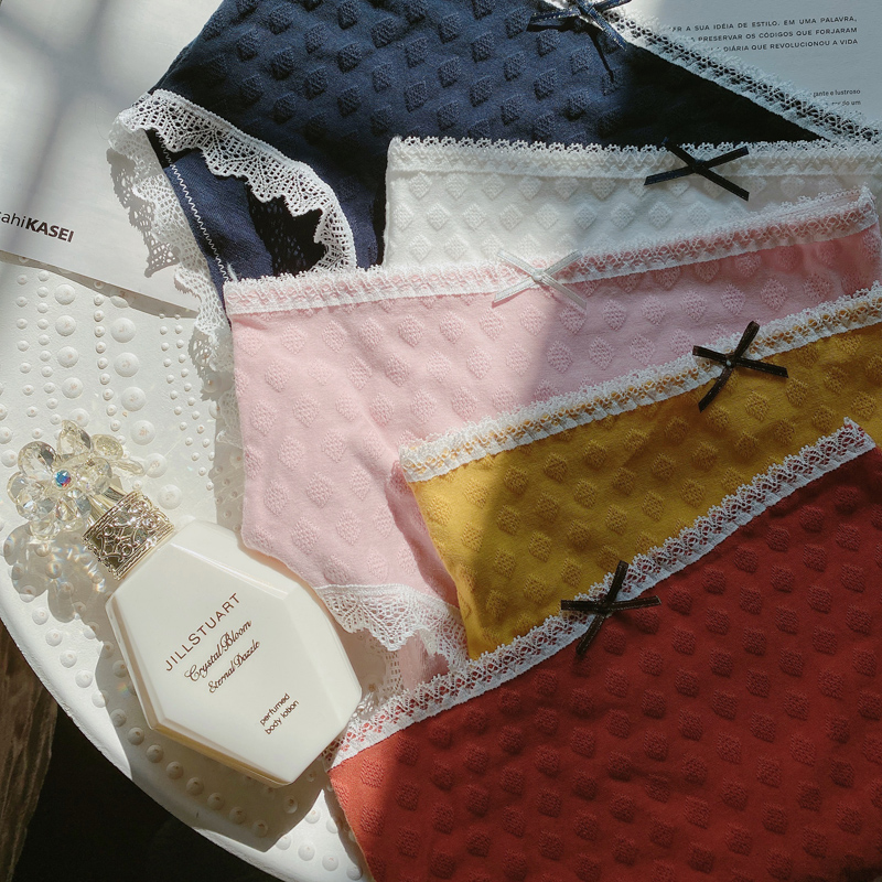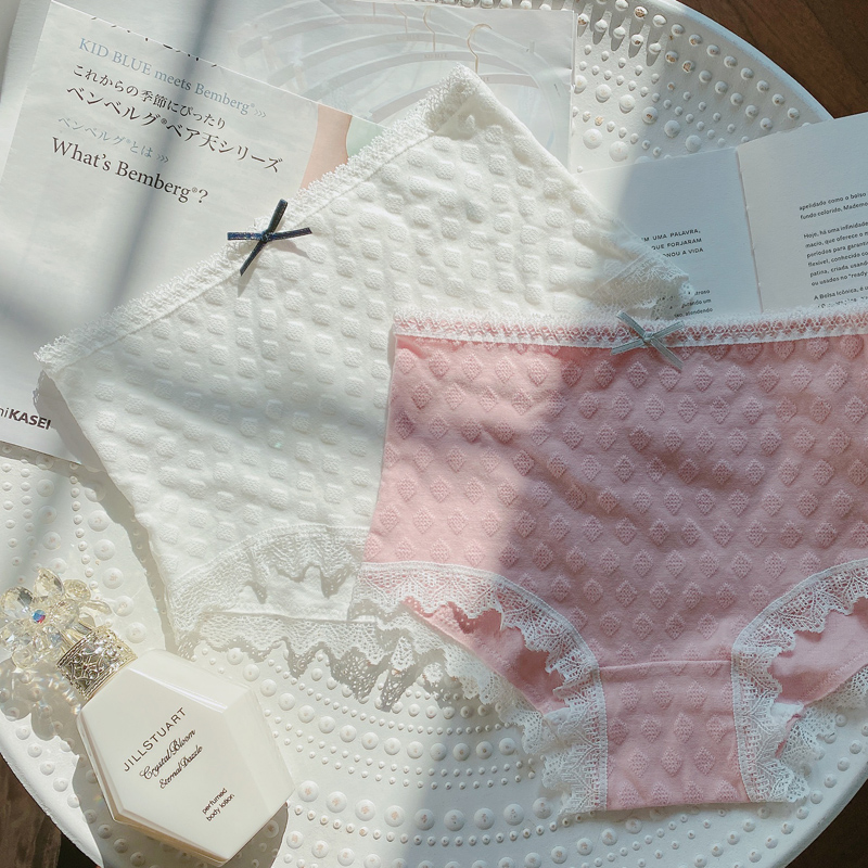 Peach honey panties female cotton crotch cute girl Japanese Lingge sweet cotton lace high waist briefs