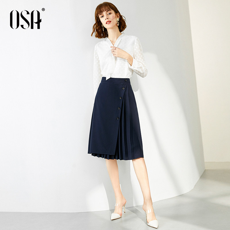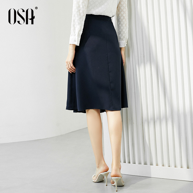 OSA summer 2021 new women's irregular skirt mid-length high-waisted pleated skirt a-line skirt is thin