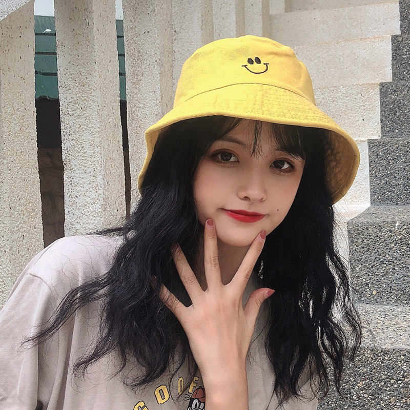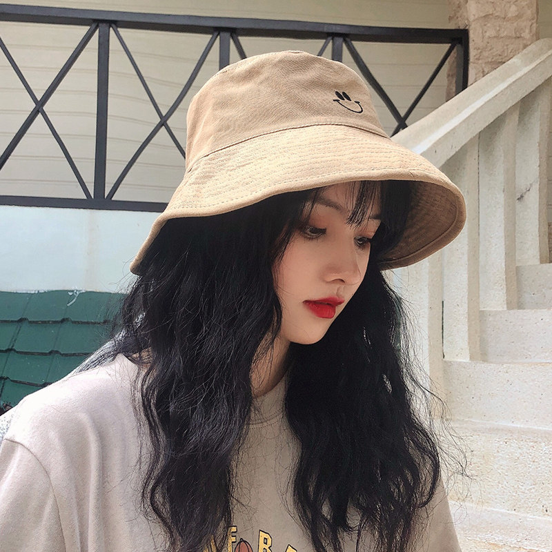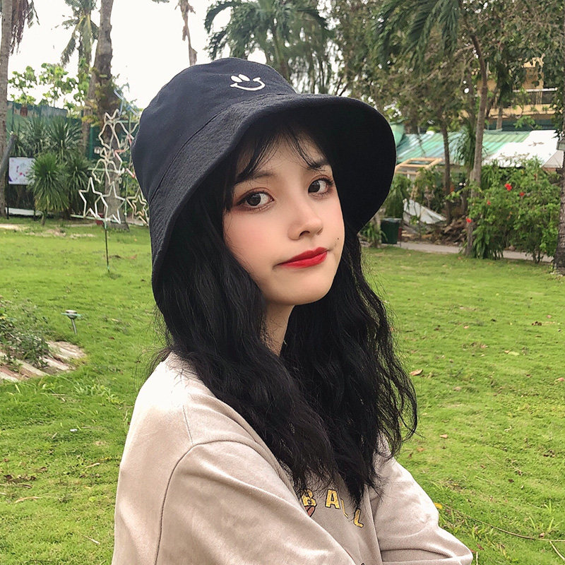 ins sunscreen women sunscreen hat children summer Han version tide 100 hitch tying up the internet red bifacial smiley face 100 hitchhiking fisherman hat