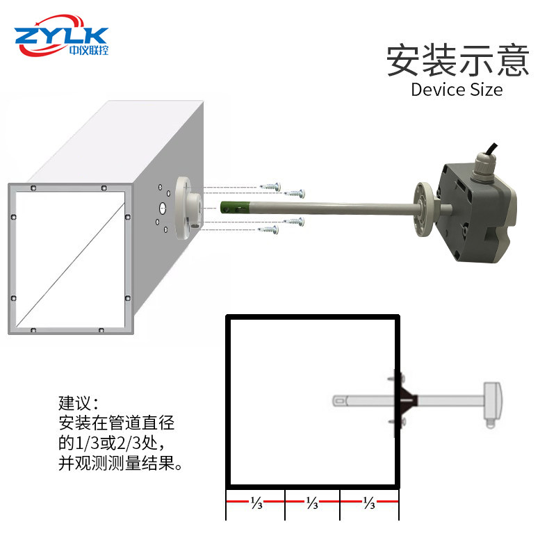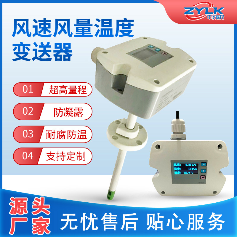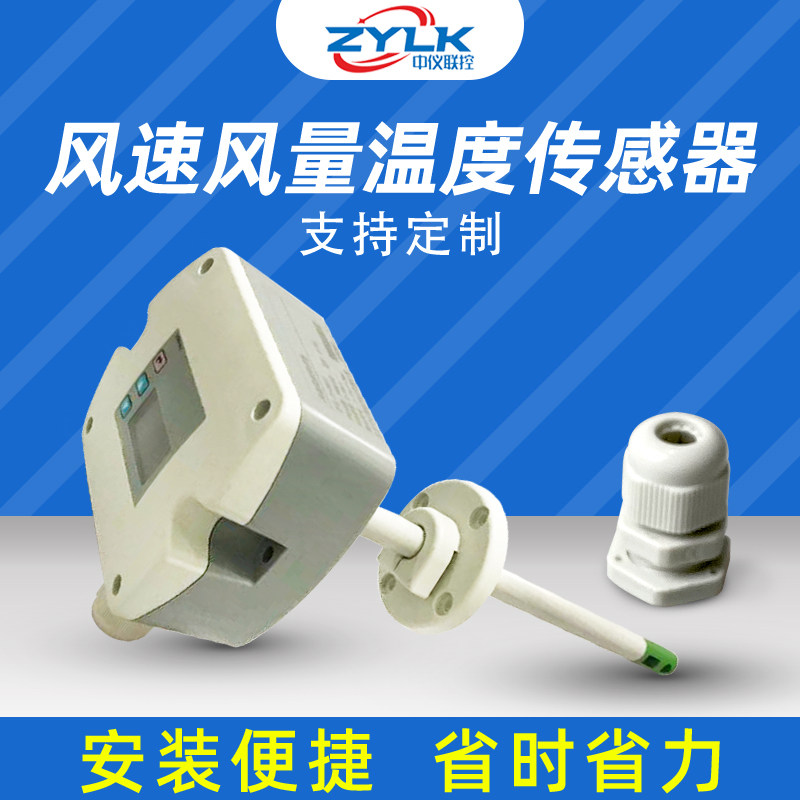 Air speed and air volume temperature transmitter, wind speed and temperature sensor, air volume and temperature measuring instrument, LCD display can be customized