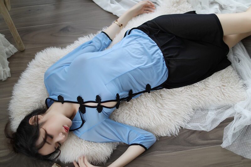 Blue Belly Pocket Underwear Blue Blouse Short Skirt Blue Long Qipao Underwear