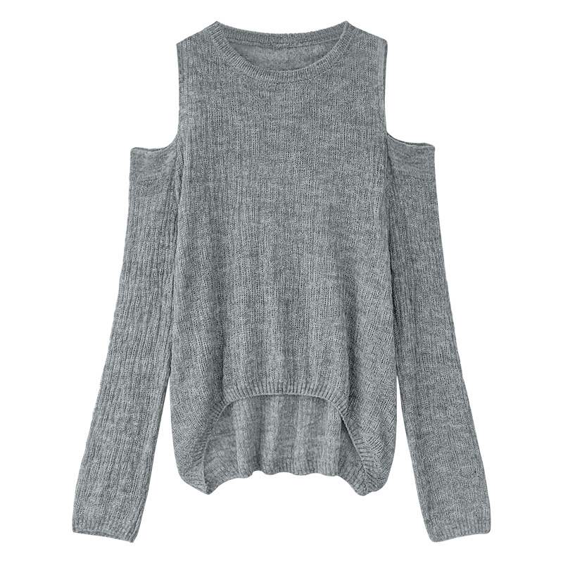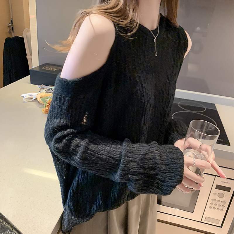 Tidal truffle shoulder-knitted sweatshirt for women 2020 spring fit new Korean version temperament V collar Long sleeve blouse loose and lazy sweaters