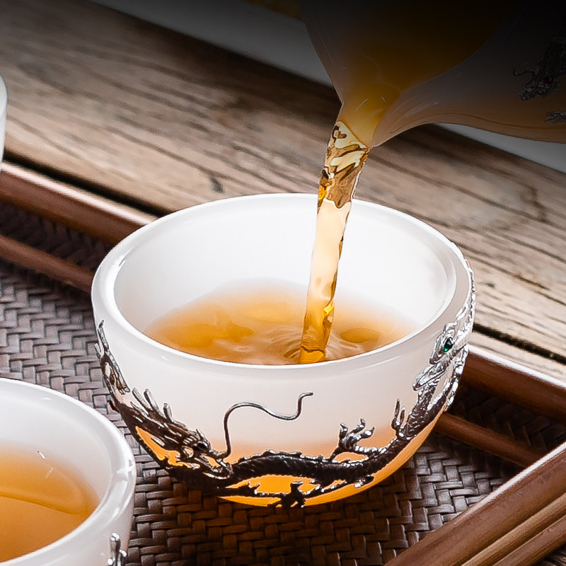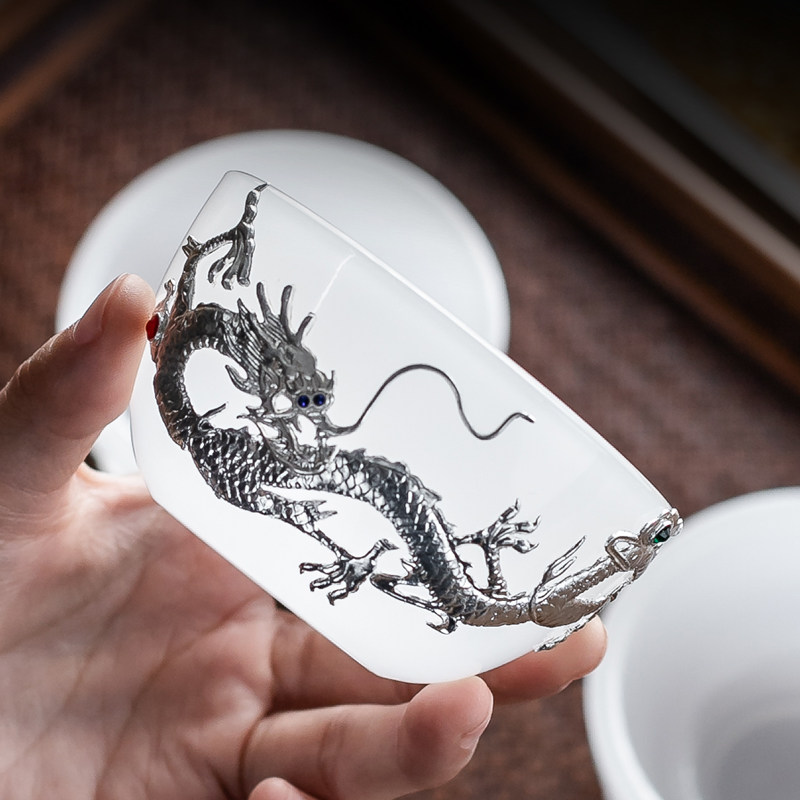Huiyao Inlaid Silver White Porcelain Jade Porcelain Tea Cup High Temperature Resistant Thickened Glass Teacup Glass Jade Jianzhan Master Cup Single Cup