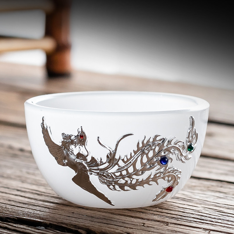 New-Glass-Silver Dragon-Bowl CupNew-Glass-Silver Phoenix-Bowl CupNew-Glass-Silver Hi-Bowl Cup
