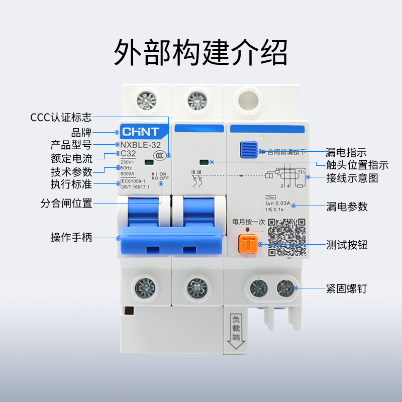 Zhengtai 3P63A earth leakage protection switch air-conditioning switch 2p32A home air switch breaker electric brake