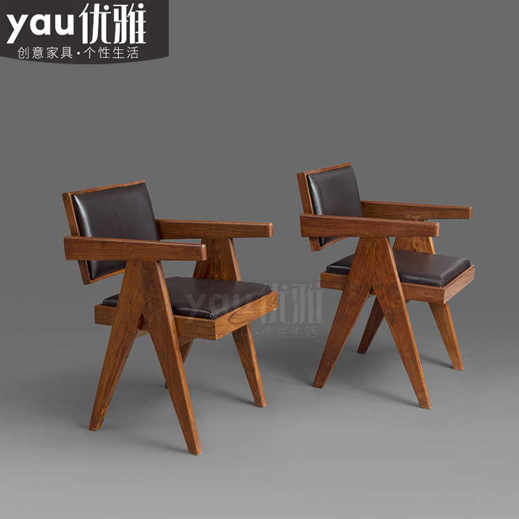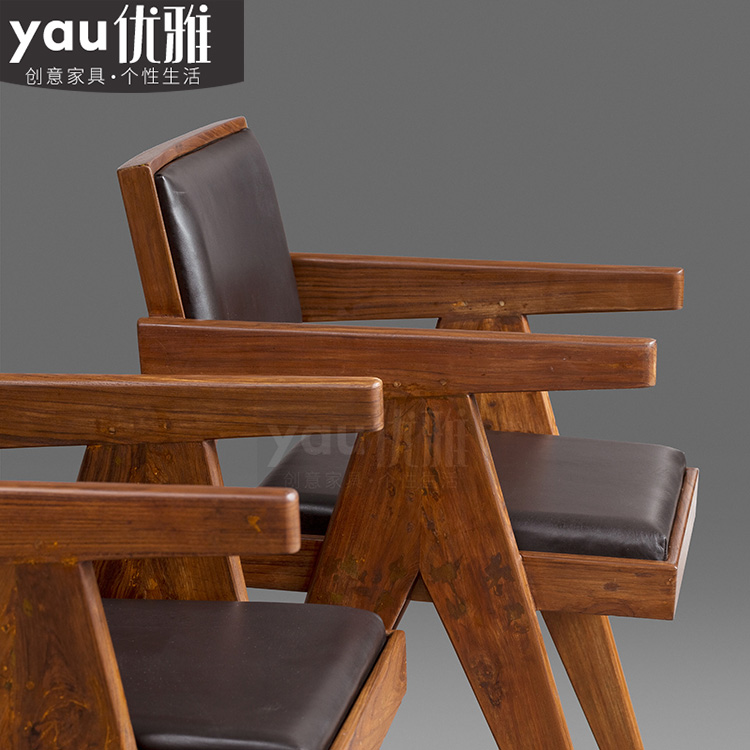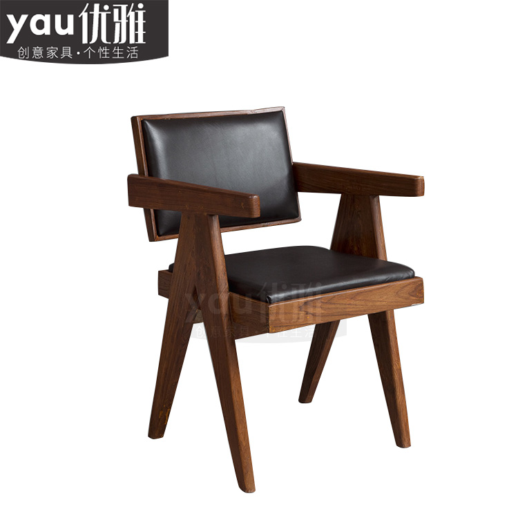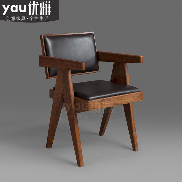 Chandigarh Solid Wood Armchair Simple Modern Designer Living Room Study Leather Cushion Leisure Chair Dining Chair