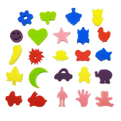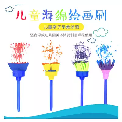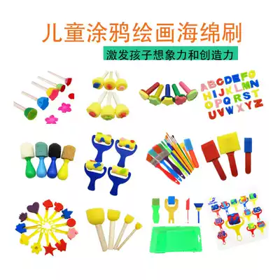 Fancy brush 4-piece set of sponge Rod 4-piece explosive sponge color random 4 flat brush 4-piece simple palette 12 sets of handle smiley face big slingshot sticker 4 sets of plastic scraper 4 sets