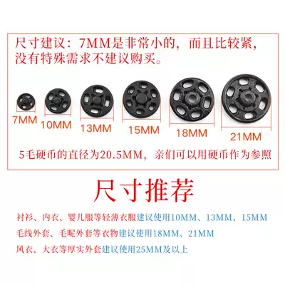 7mm (special small models not recommended)(15 pay buttons) 10mm shirt common size (15 pay buttons) 13mm shirt common size (15 pay buttons) 15mm (