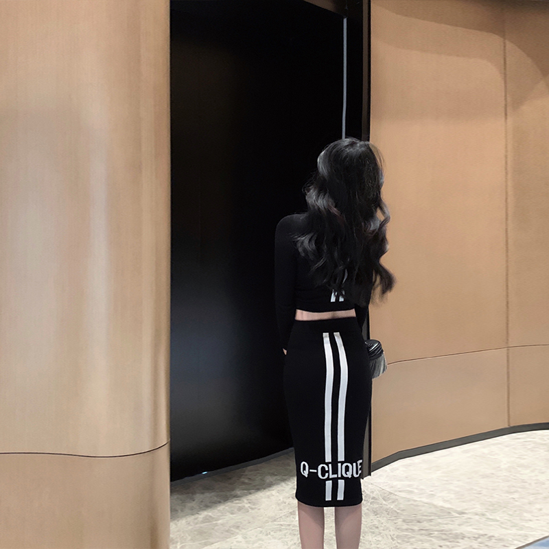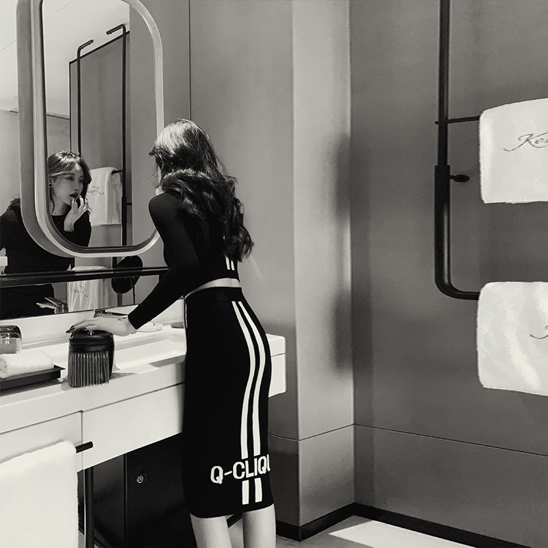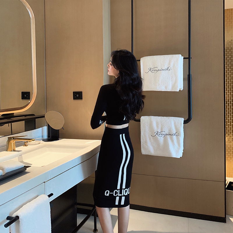 Xiaoxiangfeng spring new women's suits long-sleeved slim tops hip skirts knitted fashion two-piece suits