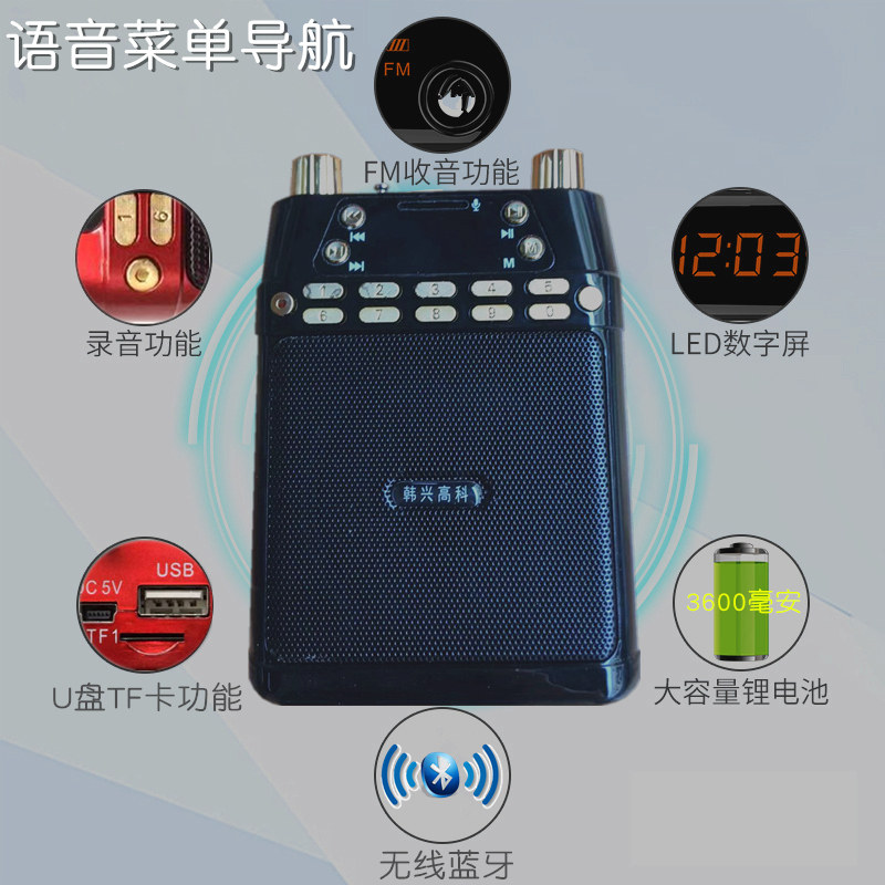 Han Xing Hi-tech amplifier megaphone teaching tour guide Dancing Watching theater Listening Radio singing machine Plug-in card USB flash drive