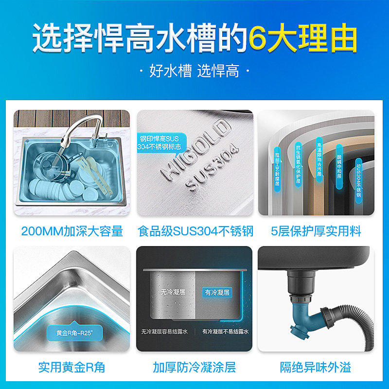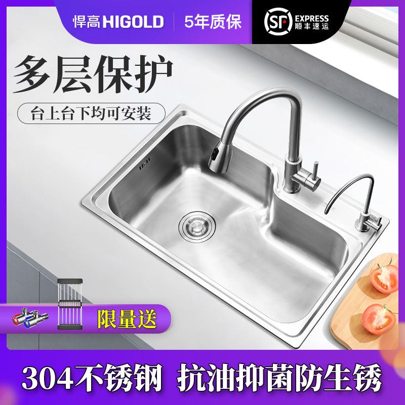 Hangao 304 stainless steel kitchen sink Double sink pool one thickened sink Household single wash basin package