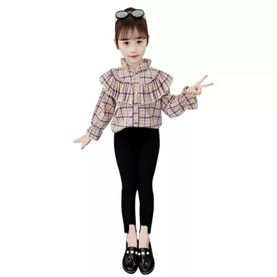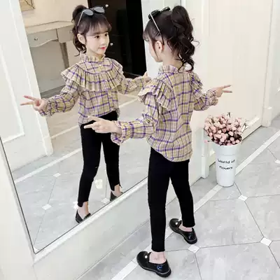 Girls Spring and Autumn Plaid shirt French top Korean long-sleeved pure cotton Western style girls and children's shirt fashionable children