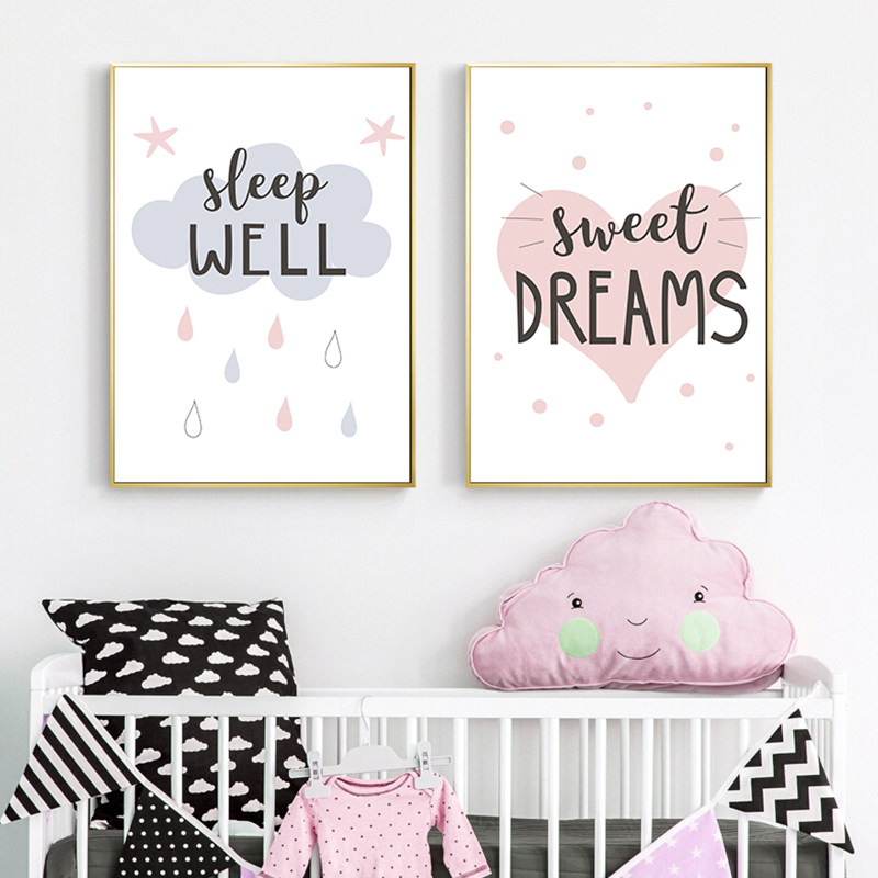 Children's room decoration painting light luxury cartoon boy bedroom bedside painting pink girl wall painting girl heart mural - Taobao