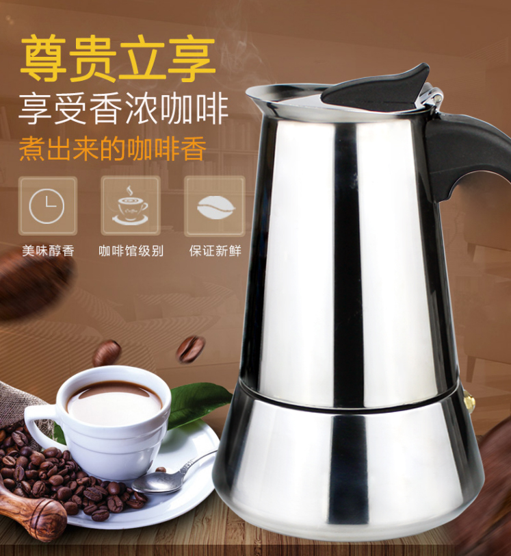 Stainless steel mocha pot Italian coffee pot espresso coffee home brewing coffee hand brewing coffee pot thickened flat bottom