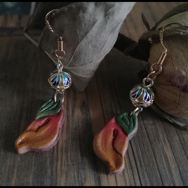 Handmade Tanning High-end Leather with ordered Bull Leather Sculpture Flower New Jewelry Cairolan Woman earthen earthen pendant