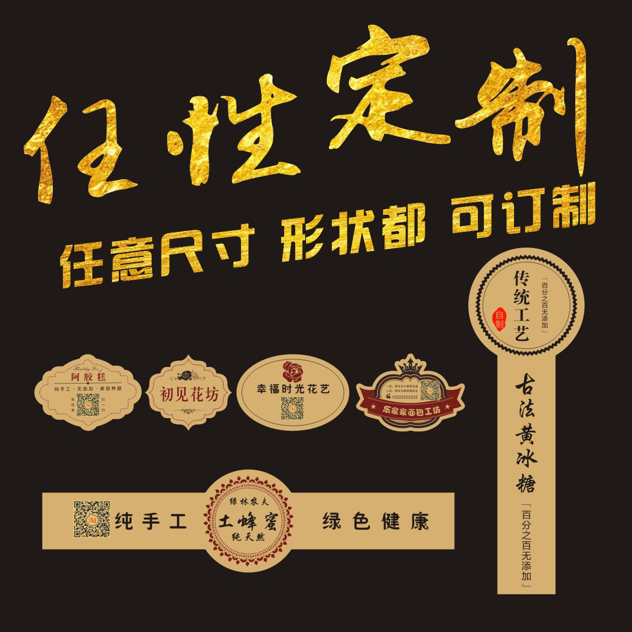 Kraft self-adhesive retro tea bottle stick label printed with a two-dimensional code logo sticker pure handmade