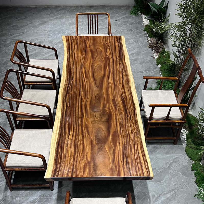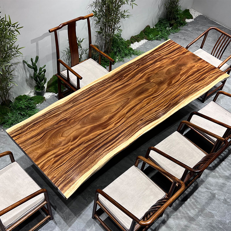Walnut large board tea table log large board natural edge whole tea table supervisor table solid wood large board calligraphy and painting table dining table
