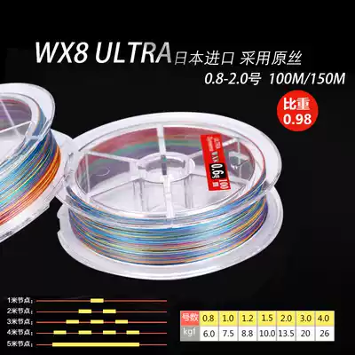 Japan imported YGK raw silk 8 braided PE line 100 meters vigorously horse raft fishing line one meter and one color raft fishing line