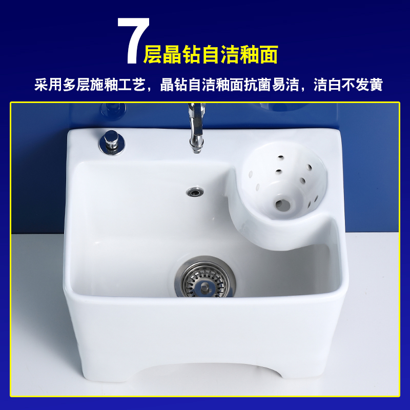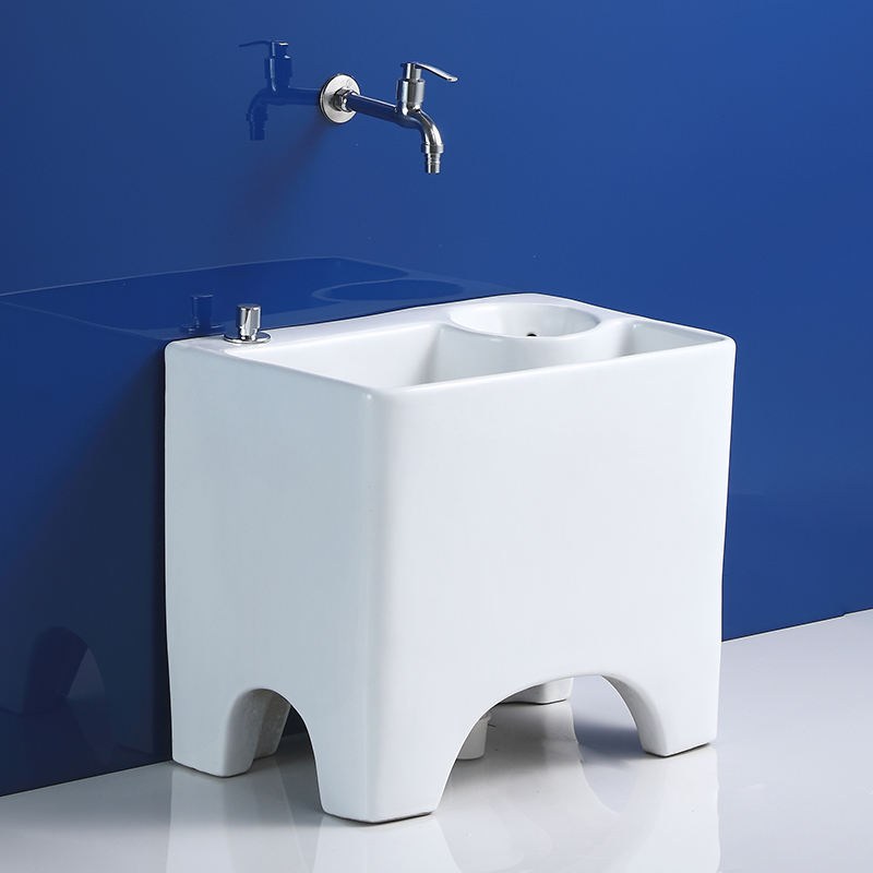 Household large ceramic mop pool with drain basket balcony dressing room washing floor mop pool high foot Pier cloth basin trough