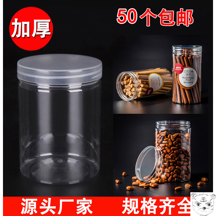 Transparent plastic bottle plastic bottle sealing jar 500ml round disposable pet plastic jar with lid dried fruit